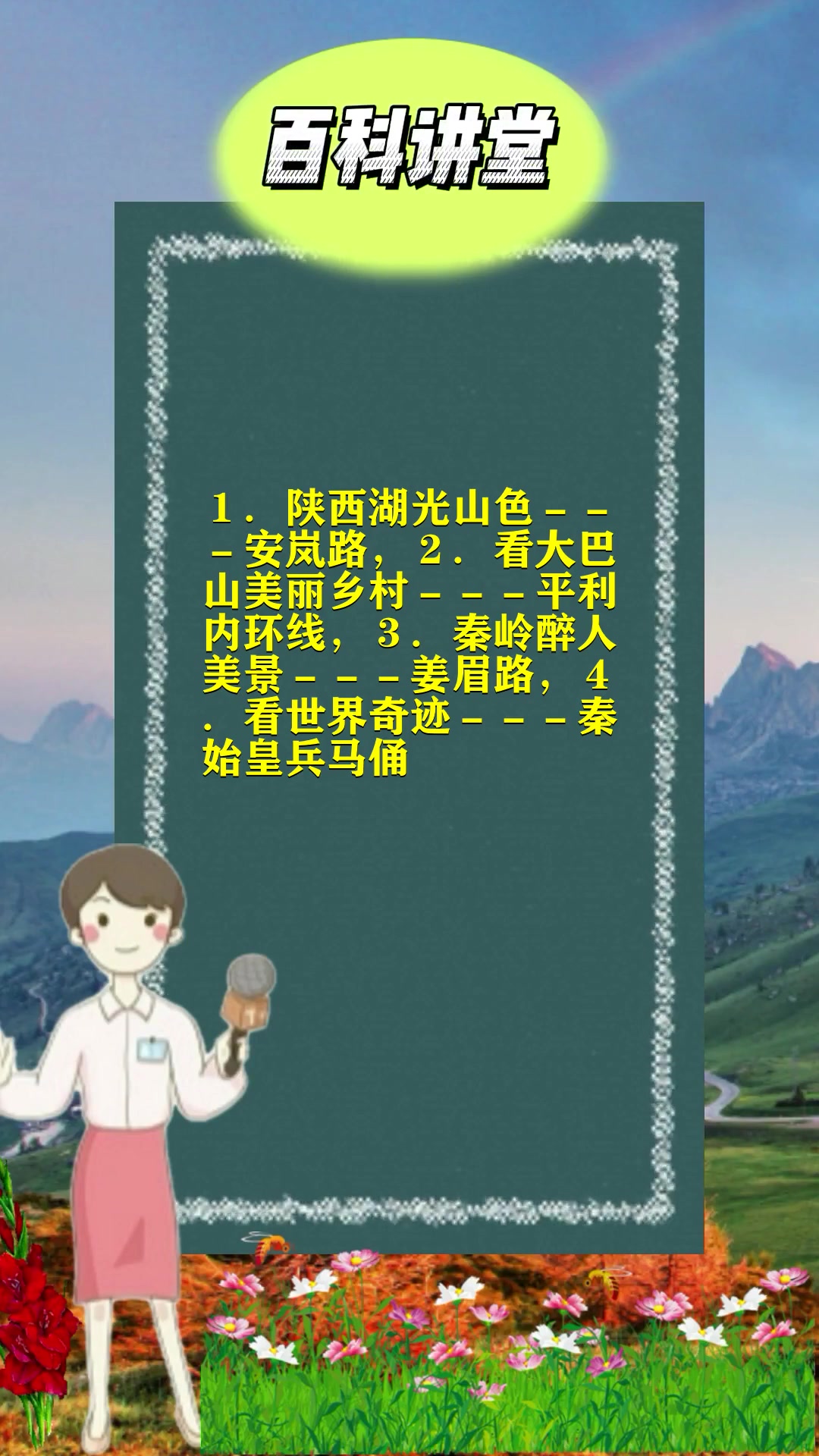 秦始皇兵马俑博物馆西安钟楼大雁塔西安城墙陕西历史博物馆大唐芙蓉园华清宫秦岭野生动物园曲江海洋极地公园大明宫国家遗址公园等西安钟楼位于西安市中心,明城墙内东西南北四条大街的交汇处,是中国现存钟楼中;现在出行游玩,自驾游是一个很好的选择,在西安周边就有不少非常适合自驾游的旅游景点,小伙伴们可以自驾到金丝大峡谷汉中勉县诸葛古镇牛背梁国家森林公园等景点游玩,详见下文1金丝大峡谷距离240公里 全程用时约;西安周边有许多非常适合自驾游的旅游景点,其中有一些景点非常推荐小伙伴们前去游玩,接下来就让我们一起来看看吧,下文为小伙伴们推荐了哪些值得一去的旅游景点吧一蓝田王顺山王顺山森林公园位于西安蓝田,奇峰耸立怪石嶙峋;1华山 华山,古称西岳,雅称太华山,为五岳之一,位于陕西省渭南市华阴市,在省会西安以东120千米处南接秦岭山脉,北瞰黄渭,自古以来就有奇险天下第一山的说法2法门寺 法门寺,又名真身宝塔,位于炎帝故里青铜器;陕西境内自驾三日游最佳路线西安黄陵壶口延安榆林第一天瞻仰黄陵,壶口远眺线路西安黄陵富县宜川壶口从西安出发,上西铜高速向北,2 个多小时就到黄陵,走309 国道经宜川到壶口;南湖主要景点有揽月楼百花园动物园狮子亭琼花阁等景区地址陕西汉中南湖风景区 汉中南湖风景区自驾线路沿西汉高速前往汉中,游览quot融碧水青山为一体,及天灵地秀于其内quot的水上园林南湖风景区6太白山。