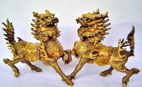 麒麟是一种瑞兽,多是由铜制制造,可以化三煞五黄。古人认为麒麟为仁兽,双角、偶蹄,身有麟甲,尾毛卷须,属吉祥之宝,能够消灾解难,驱除邪魔,化解煞气。