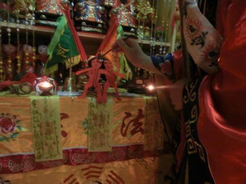 行法:选择午后3——4点时间,着黑色衣服入密室,把蜡烛按照八个方位摆放好,然后坐在蜡烛中间,按照所诅咒之人当时所在的方位(要是你不知道他此时的方位,则可能下不中。)把人形点燃,然后集中全力冥想人形燃烧的烟在空中飞行,向对方飞去,口中可以不停念到:“飞!飞……”等烟尘飞到对方的时候,一定要大喝一声:“中!”把毒烟打入对方丹田。随后一直把毒烟定在对方体内,直到所有蜡烛燃烧完。