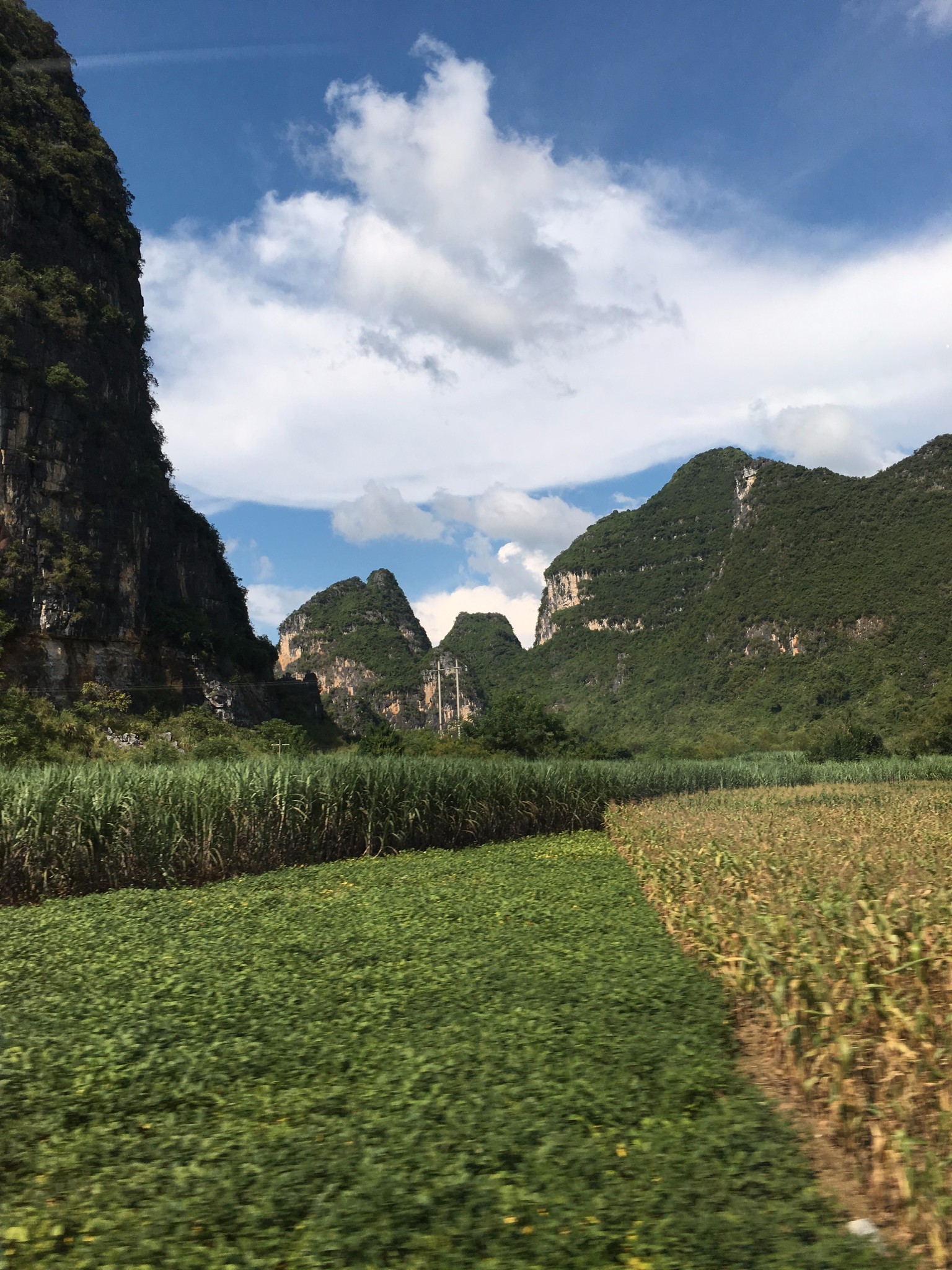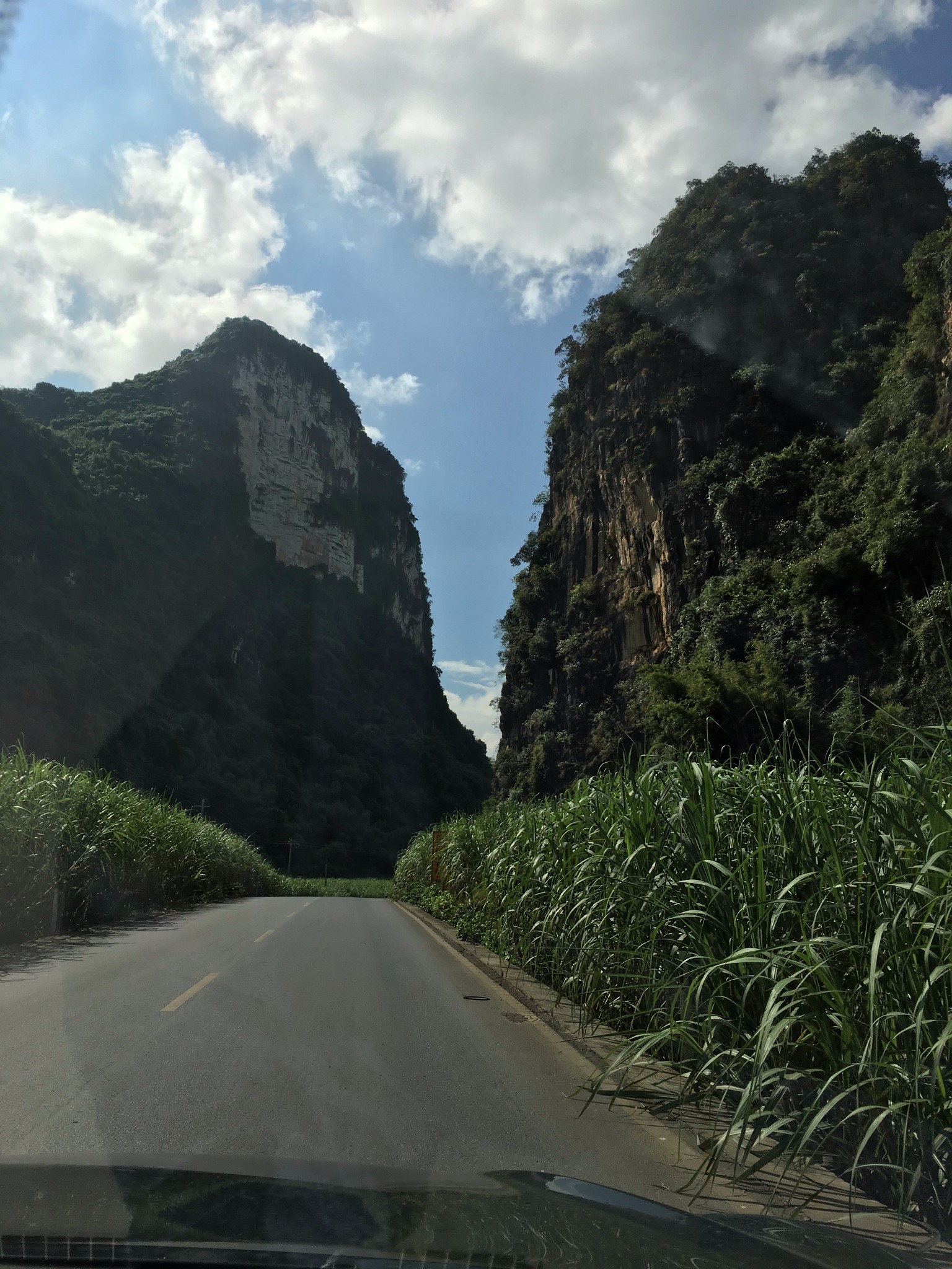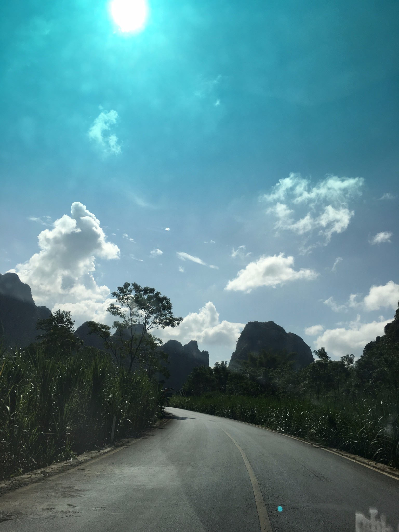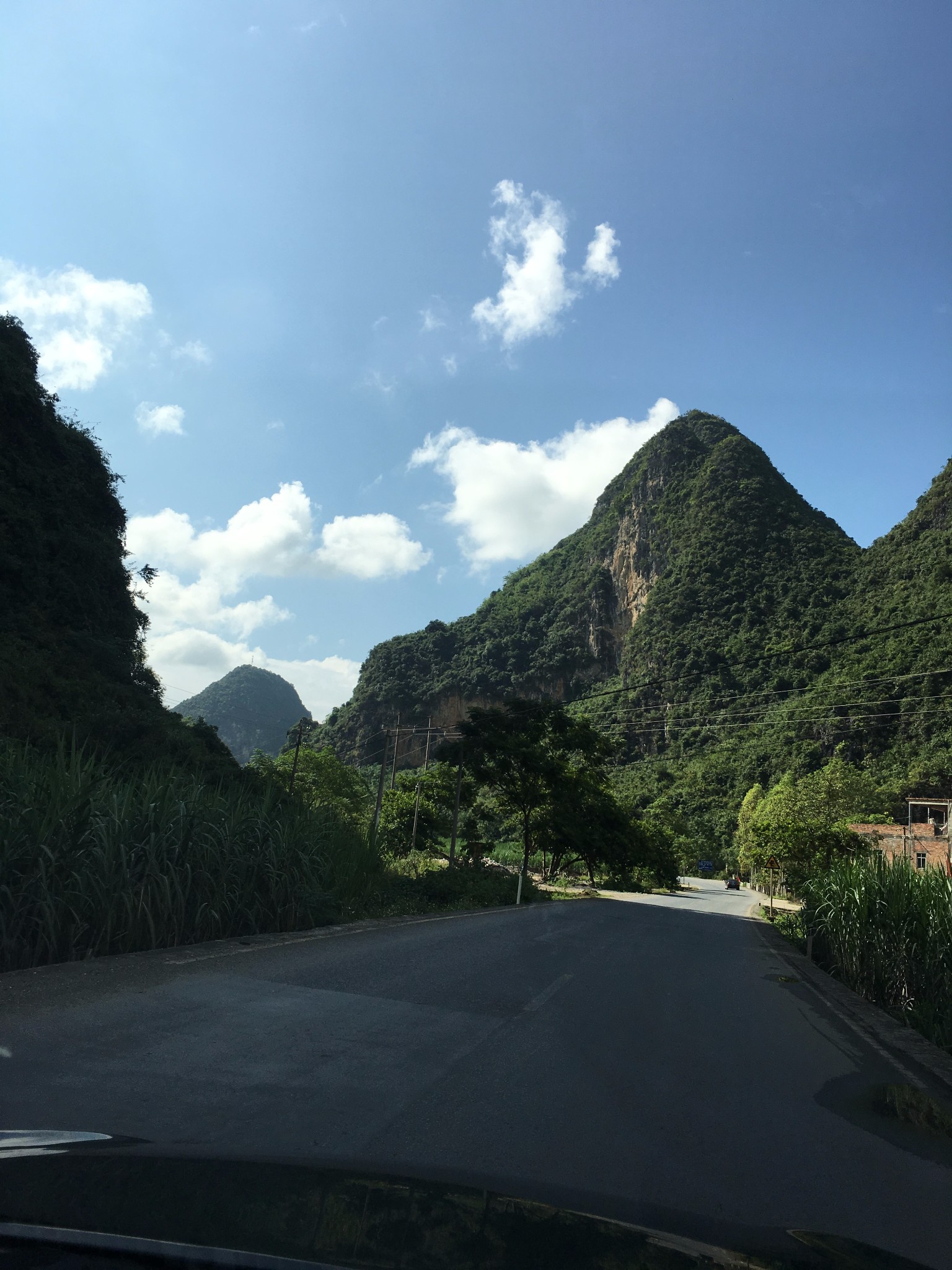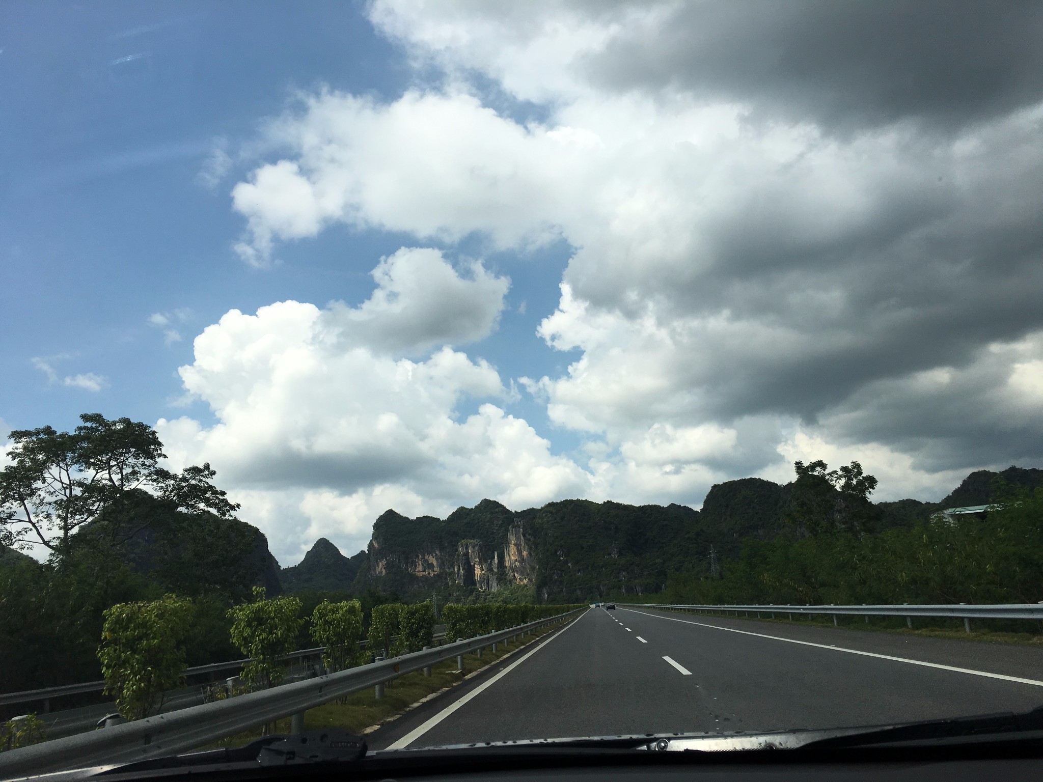 南宁开往扶绥的高速公路上,悠悠白云下如画的山岭变换着,像三D 大片一样,驾车这样行驶是一种无言的享受,连车内音响都关掉了,静静地欣赏。